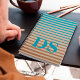 Horizontale Streifen, braun und blau, Monogramm Notizblock