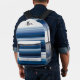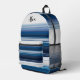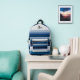 Breite und schmale horizontale Streifen in Blau, Schwarz, Grau und Weiß bilden einen klassischen und eleganten Rucksack.