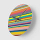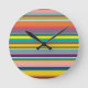 This clock has a design of horizontal stripes in shades of blue, green, brown, purple, red, yellow, orange und pink.