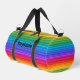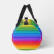 Horizontaler Regenbogen Streifen Duffelbeutel mit anpassbarem Text. Weitere Taschenoptionen finden Sie im Drop-Down-Menü.