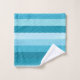 Dieses Badehandtuch-Set vereint Aqua-, Blau- und Zyantönen mit geometrischen Formen und einem Zickzack, weißen Overlay, und schafft ein ruhiges, minimalistisches, modernes abstraktes Design.