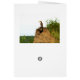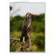 Ein roter Kronenschnabel sitzt auf einem Akazienbaum in Südafrika. Auf der Rückseite der Karte sitzt ein gelb gekleideter Hornbill auf einem Termitenhügel.