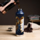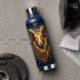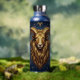 A mystical golden Ram Aries Astrology sign water bottle with Aries dates and traits on the back, along with compatibility and other fun Aries facts.