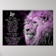 Schwarzes und Lila Löwenposter mit einer Liste der Leotraits, Daten und anderen Horoskop-Informationen.
