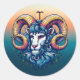 Sticker. Eine schöne Illustration eines coolen majestätischen Widders in einer bunten ai Illustration. Digitale Kunst in Blau und Orange.