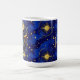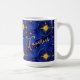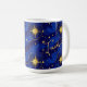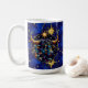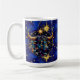 Königlich blaue und goldene Kaffeetasse mit einem Bullensymbol für das Horoskop-Zeichen Taurus mit Sternhintergrund. Eine auffallende ai Art Illustration.