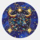 Königlich blaue und goldene Aufkleber mit Stier-Symbol für das Horoskop-Zeichen Taurus mit Sternhintergrund. Eine auffallende ai Art Illustration.
