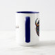 Königlich blaue und goldene Kaffeetasse mit einem Bullensymbol für das Horoskop-Zeichen Taurus mit Sternhintergrund. Eine auffallende ai Art Illustration.