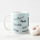 Zodiac Astrologie signiert Virgo-Kaffee-Tasse mit Worten, die die positiven Eigenschaften der Virgo beschreiben.