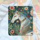 Pferd mit Vintagen Blume im Hintergrund, goldener Sonne und ein paar goldenen Blätter. Ein märchenhaftes Pferd.