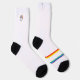 Show your love for horses and science in style! These vibrant crew socks feature a playful graffiti-style rainbow nucleotide blast with a black hoofprint overlay on the outer right top. The left sock sports a subtle logo at the cuff, while the "Two Sisters" stripes across the foot split the rainbow into two vivid sets of colors-red, orange, yellow and green, blue, purple. Perfect for equestrians, science enthusiasts, rainbow lovers, and anyone looking for a unique, eye-catching gift!