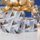 A herd of chestnut colored horses gallop through a breathtaking, snowy forest, their powerful movements creating a stunning contrast against the serene, snow-covered trees that envelop the scene in majestic beauty