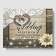 Rustikales Country Style Wedding Gästebuchvorlage - Ein paar alte Horseshoe Herzstücke mit Rope Bow Knot und White Lace, Sonnenblumen, Streichelleuchten und Burlap Tuch auf dem alten Stall Holz Hintergrund. Ein perfektes Design für Ihren großen Tag. Alle Textstile, Farben, Größen können an Ihre Bedürfnisse angepasst werden!