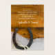 Üben Sie etwas Hochzeitsfreundlichkeit, wenn Sie eine Hochzeitsspendenkarte in der Umgebung des Empfangs arrangieren. Der charmante Western von Horseshoe und Pearls Country Wedding Wohltätigkeit Fevor Card Staaten, die anstelle eines traditionellen Gastgeschenks, eine Spende in ihrem Namen für die Wohltätigkeit gemacht wurde. Passen Sie die Karte mit dem Namen der bevorzugten Wohltätigkeit und den Namen der Braut und des Bräutigams an. Diese rustikalen und schicken Gastgeschenke Hochzeiten zum Thema Pferde zeigen ein malerisches Foto eines rostigen Hufeisens und einen weißen Brautschleier mit braunem, verwittertem Holzhintergrund.