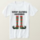 Hör auf, ihm lustige Weihnachten zum Shirt zu erzählen! Cooles Design mit langen Elffüßen. T-Shirts in Farbe für Feiertage.