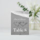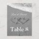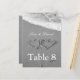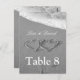 Herz in Sand-Tischnummer-Karten für das Abendessen am Empfang | Thema Strand. Schwarz-Weiß-Foto mit romantischen Herzen an der Küste. Gebundene Herzen gezeichnet im Sand. Ideal, um Ihre Meeres- oder Strandhochzeit zu erinnern. Personalisierbare Braut- und Bräutigame mit elegantem Skripttext.
