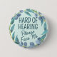 Mit diesem botanischen Abzeichen von JessicaAmber kennen gelassen Menschen Ihre besonderen Bedürfnisse! Der Slogan "Hard of Hearing, Please Face Me", umgeben von einem Kranz mit blauen Blätter, auf blass blauem Hintergrund. Sie können den Text und die Hintergrundfarbe nach Bedarf bearbeiten. ⭐ Für weitere nützliche Accessoires für die körperliche Gesundheit besuchen Sie bitte mein Geschäft Zazzle.com/Elder_Vitality ⭐ Für benutzerdefinierte Bestellungen, schreiben Sie mir auf Zazzle