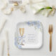 Elegante florale Brautparty-Papierteller mit einer pastellblauen, zarten Hortensienblütenanordnung und eleganter Typografie.