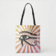 Das alte ägyptische Symbol, das Auge des Horus. Retro Sun zeichnend im Hintergrund. Störte Version. Spezielle Taschen für Damen und Herren. Geschenkidee.