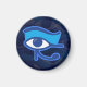 Magnet mit Auge des Horus, das Symbol des Schutzes im alten Ägypten. Das Horus Eye zeichnet sich durch seine blauen Farbtöne auf den verblassten Horus Eyes im Hintergrund aus.