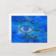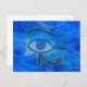 Postcard mit Horusaugen strukturiert blau mit vergoldeter Kontur abstraktes Design. Das Horusauge ist in blauen Tönen auf verblassten Horusaugen im Hintergrund zu sehen.