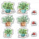 Niedliche Pflanze momma Hosta Pflanze in verschiedenen Tönen von Grün und verschiedenen dekorativen Töpfen mit dekorativen Elementen - einschließlich leuchtend roten Ladybugs Aufkleber Bögen. Diese Pflanze inspiriert Aufkleber können verwendet werden, um Ihre Umschläge zu dekorieren und Siegel oder als Scrapbooking Lieferungen und Kunstprojekte für alle Pflanze Liebhaber.