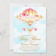 Heißluftballon Babydusche Einladungen mit hübschem rosa und goldfarbenem Heißluftballon mit Blumenbanner auf aquamarinem blau-weißen Wolkenhintergrund. Diese schöne rosa und goldene Heißluftballon Baby Dusche Einladung ist einfach für Ihre Veranstaltung angepasst, indem Sie einfach Ihre Details hinzufügen. Sie können auch die Hintergrundfarbe in den Schatten, den Sie bevorzugen, auf dieser Babydusche mit süßer Heißluft-Ballon.