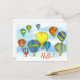 Eine "Hallo"-Postkarte für den behalt in Touch mit bunten Heißluftballons, die hoch im Himmel schweben an einem friedlichen bewölkten Tag illustriert mit Wasserfarbe.