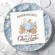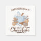 Heiße Weihnachtsschokolade und Lebkuchen in blauen und braunen Papierservietten. Elegantes und niedliches Weihnachtsdesign. Personalisieren Sie den Namen einfach. Kate Eden Art
