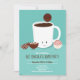 Eine lustige Urlaubsparty-Einladung für eine heiße Schokoladenbombe und ein heißes Kakao-Party. Diese Einladung enthält eine lächelnde Tasse heißen Kakaos mit einer Vielzahl von heißen Schokoladenbomben auf einem aquamarinen Hintergrund. Bereit für Ihre Einladungen? Fügen Sie einfach Ihre Informationen hinzu, fügen Sie diese Einladung in Ihren Warenkorb, dann genießen Sie dieses köstliche Party. Hot Chocolate Bomb Hot Cocoa Party Einladung Sweetsham Food Art | ©Melissa Patton - Künstler/Illustrator