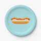 Hot Dog Cartoon Zeichnend auf blauem Hintergrund Pappteller