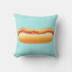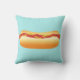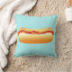Dieses Kissen bietet eine köstliche Cartoon-Illustration eines Hot Dog Snacks. Der Hot Dog hat einen leckeren Bun und es gibt sowohl Ketschup als auch Senf auf der Wurst.