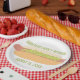 Erstellen Sie individuelle personalisierte Party-Teller für Kochgelegenheiten, Familienwettkämpfe, Hot-dog-Fressen und vieles mehr. Diese Teller zeigen einen Hot Dog, der mit Hecht-Reliquien überzogen ist, und Ihren eigenen Text in grell grün oben und unten.