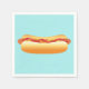 Diese Serviette bietet eine köstliche Cartoon-Illustration eines Hot Dog Snacks. Der Hot Dog hat einen leckeren Bun und es gibt sowohl Ketschup als auch Senf auf der Wurst.
