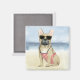 Hot Dog | Welpe in Sonnenbrille am Strand Magnet