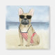 Dieses Aquarellbild besticht durch eine Welpe in Sonnenbrillen, die den Strand genießen | Nach Grace Popp