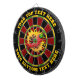 Dunkelrot, schwarz, grün und gelb gestrichene Tafel. Jede Farbe ist anpassbar. Heiße Pfeffer im Flammenkreis. Zwei benutzerdefinierte Textbereiche auf dem äußeren Ring.