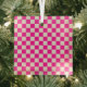 Hot pink and tan checkerboard pattern ornament aus glas