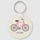 Ein Schlüsselanhänger, der eine Abbildung eines heißen rosa Fahrrads zeigt. Personalisieren Sie mit Ihrem Namen unter Fahrrad.