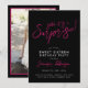 Hot Pink Black Girly Foto Überraschung Sweet 16 Einladung