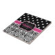 Elegantes schwarz-weißes Damast-Muster mit Polka-Punktmuster. Dieses trendige Girly-Geschenk verfügt über einen schwarzen, rosa und weißen Typenschild für Ihren individuellen Namen und Ihre Monogramm. Das wäre ein cooles Geburtstagsgeschenk für Mädchen oder ein Weihnachtsgeschenk für sie.