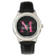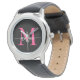 Hot Pink Black Modern Script Girls Monogram Name Armbanduhr
