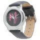 Hot Pink Black Modern Script Girls Monogram Name Armbanduhr