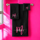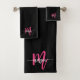 Hot Pink Black Modern Script Name Girl Monogram Badhandtuch Set