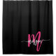 Hot Pink Black Modern Script Name Girl Monogram Duschvorhang