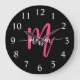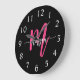 Hot Pink Black Modern Script Name Girl Monogram Große Wanduhr