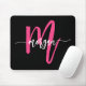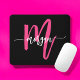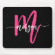Hot Pink Black Modern Script Name Girl Monogram Mousepad