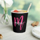 Hot Pink Black Modern Script Name Girl Monogram Pappbecher