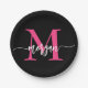 Hot Pink Black Modern Script Name Girl Monogram Pappteller