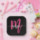 Hot Pink Black Modern Script Name Girl Monogram Pappteller